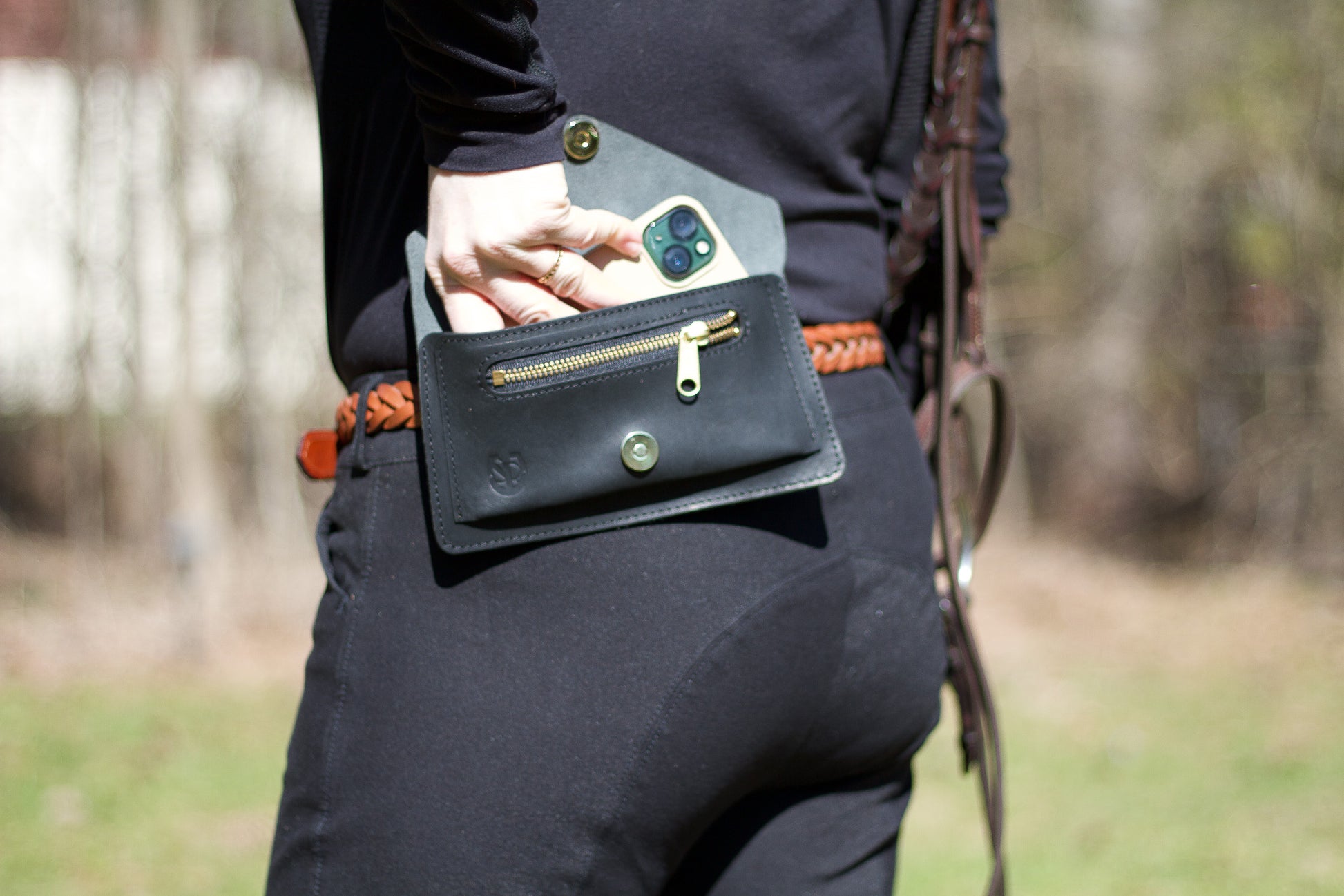 Black Leather Belt Bag – Equestrian Phone Holder for Riding & Everyday Wear