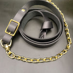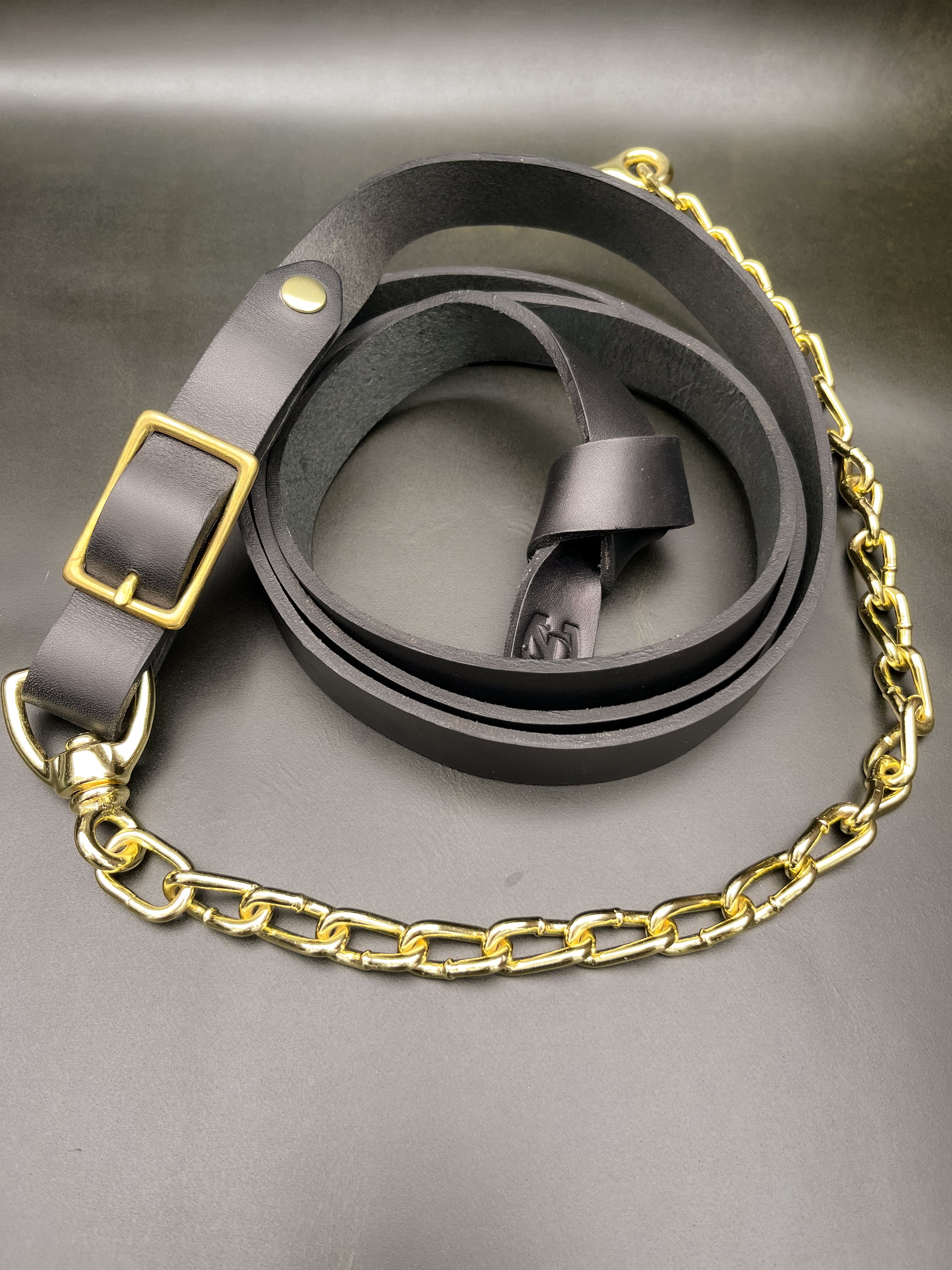 Black Leather Horse Lead Shank with Brass-Plated Chain & Brass Clip –Dual Attachment Lead Rope