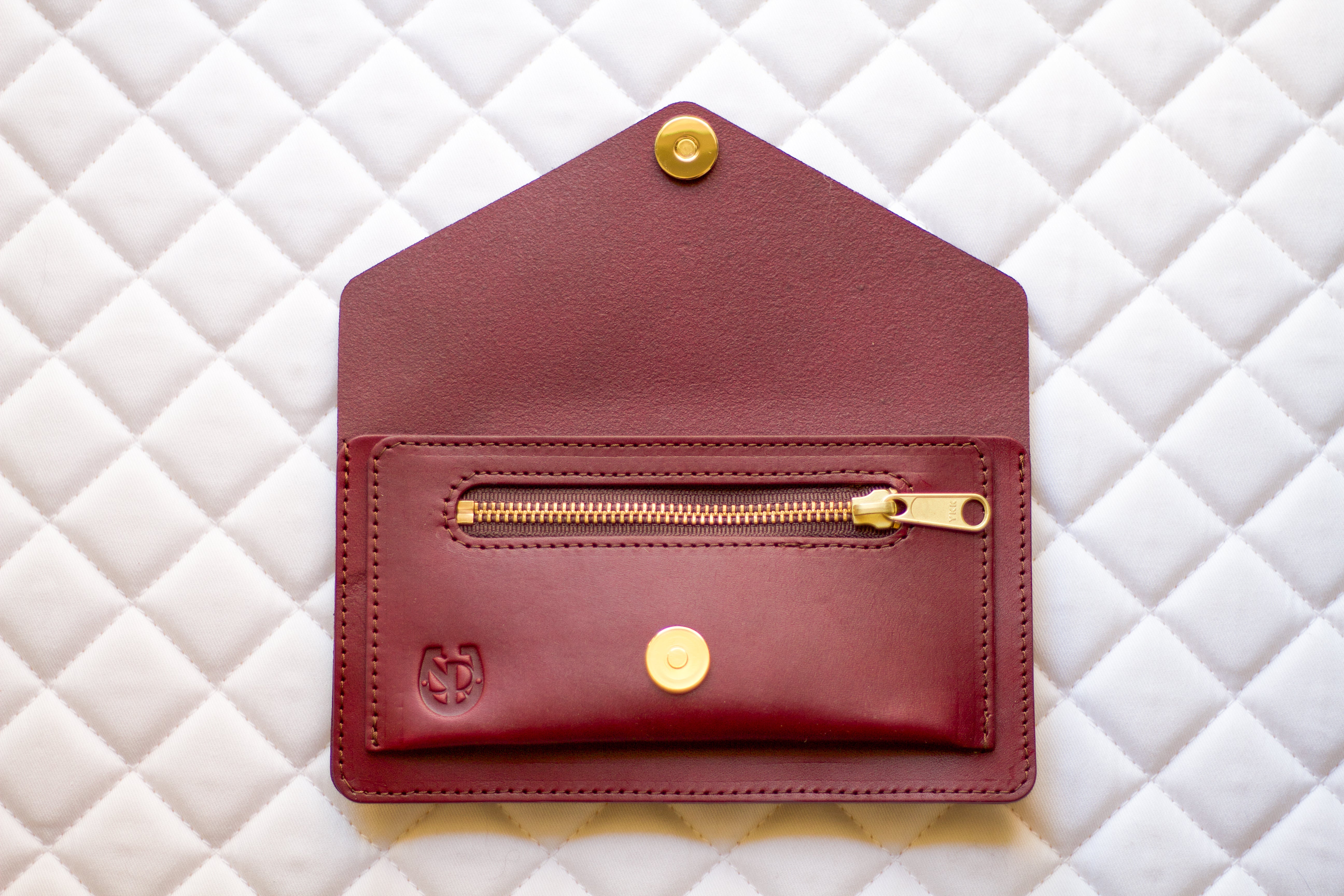 The main pocket fits most smartphones, while the built-out front pocket is perfect for cards, cash, lip balm, or keys. A super-strong brass magnetic snap keeps everything secure, yet lets you access your phone easily with one hand—no fumbling with a zipper.